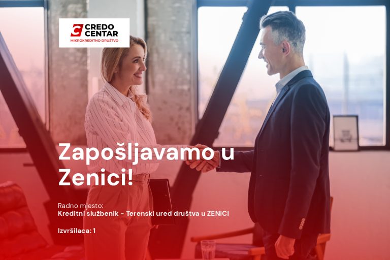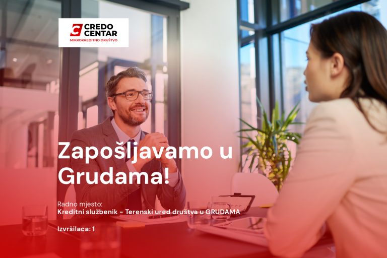 Zbog povećanja obujma posla Mikro kreditno društvo CREDO CENTAR d.o.o. Mostar, raspisuje NATJEČAJ/KONKURS za prijem djelatnika u radni odnos: Kreditni